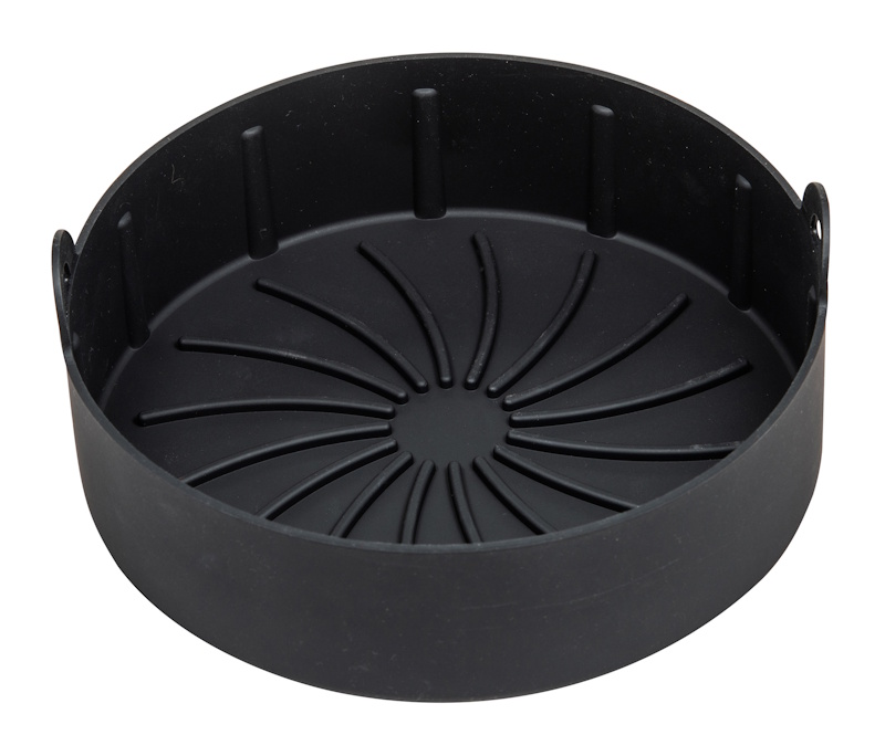 Silikonista valmistettu vuoka isommille airfryereille. Suojaa fryerisi naarmuilta ja likaantumiselta. Jämäkkä rakenne ja kätevät kahvat helpottavat käsittelyä. Lämmönkesto 270 °C. Konepestävä.