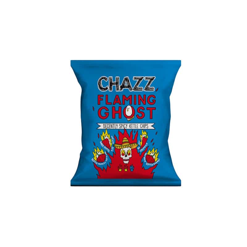 Chazz Flaming Ghost on tulinen sipsi, mutta kuitenkin miedompi kuin isoveljensä Carolina Reaper. Tämä sipsi sisältää Chipotle chiliä, Naga Jolokia chiliä, sekä Scotch Bonnet pippuria. Uskallatko maistaa?