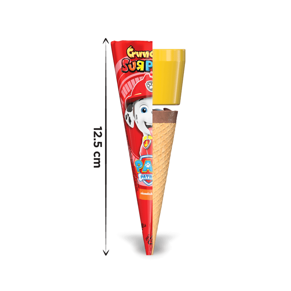 Herkullinen vohvelitötterö, joka on täytetty praline suklaalla ja päällä on värikkäitä karkkeja. Tuote sisältää yllätyksen.