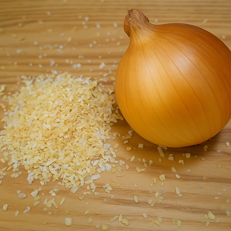 Kuivattua puhdasta sipulia. Rouhittu kokoon 4 mm